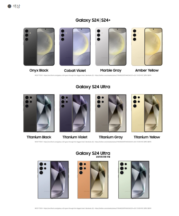 갤럭시 S24 울트라 및 일발 컬러