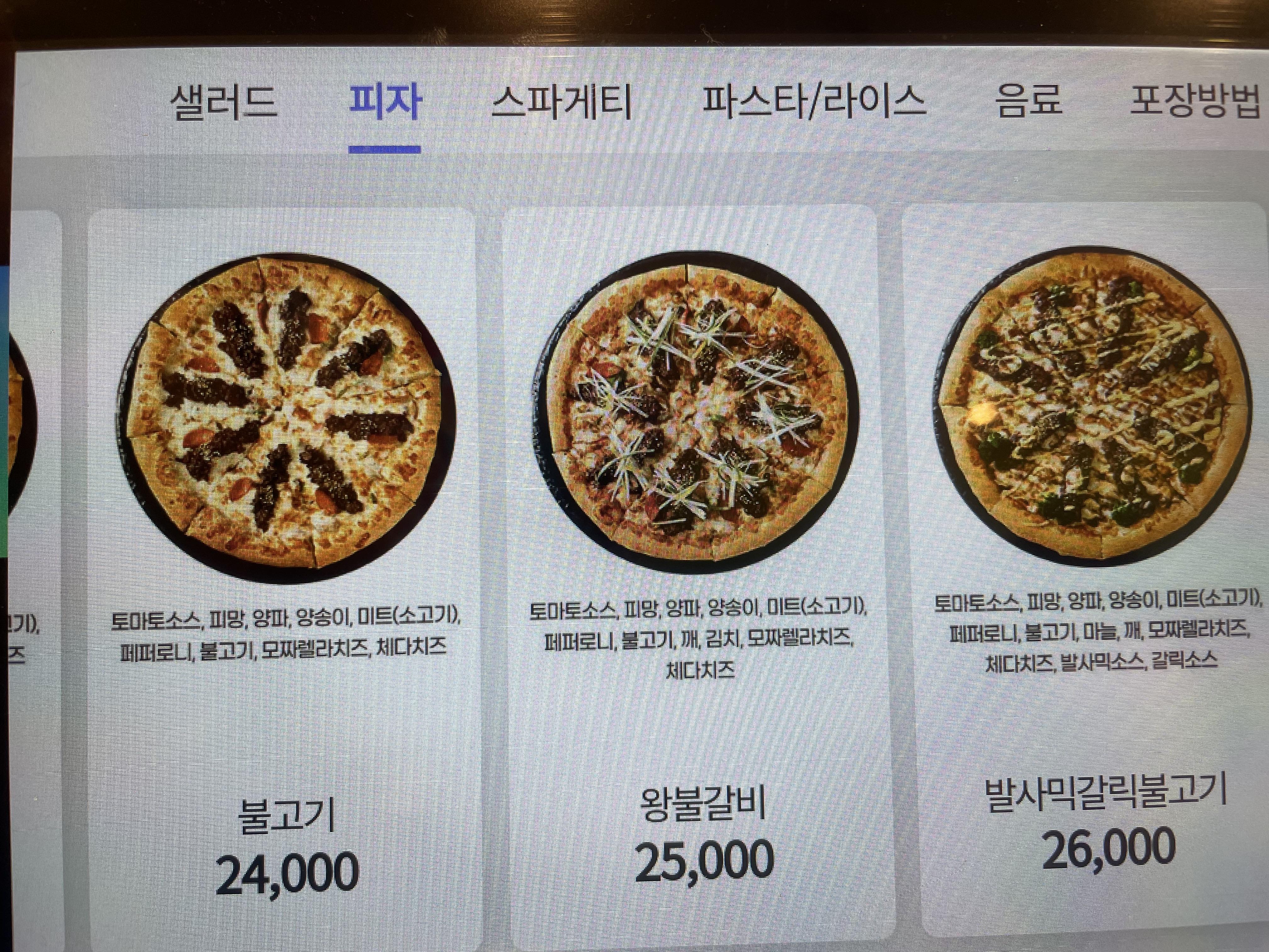 이재모피자 메뉴