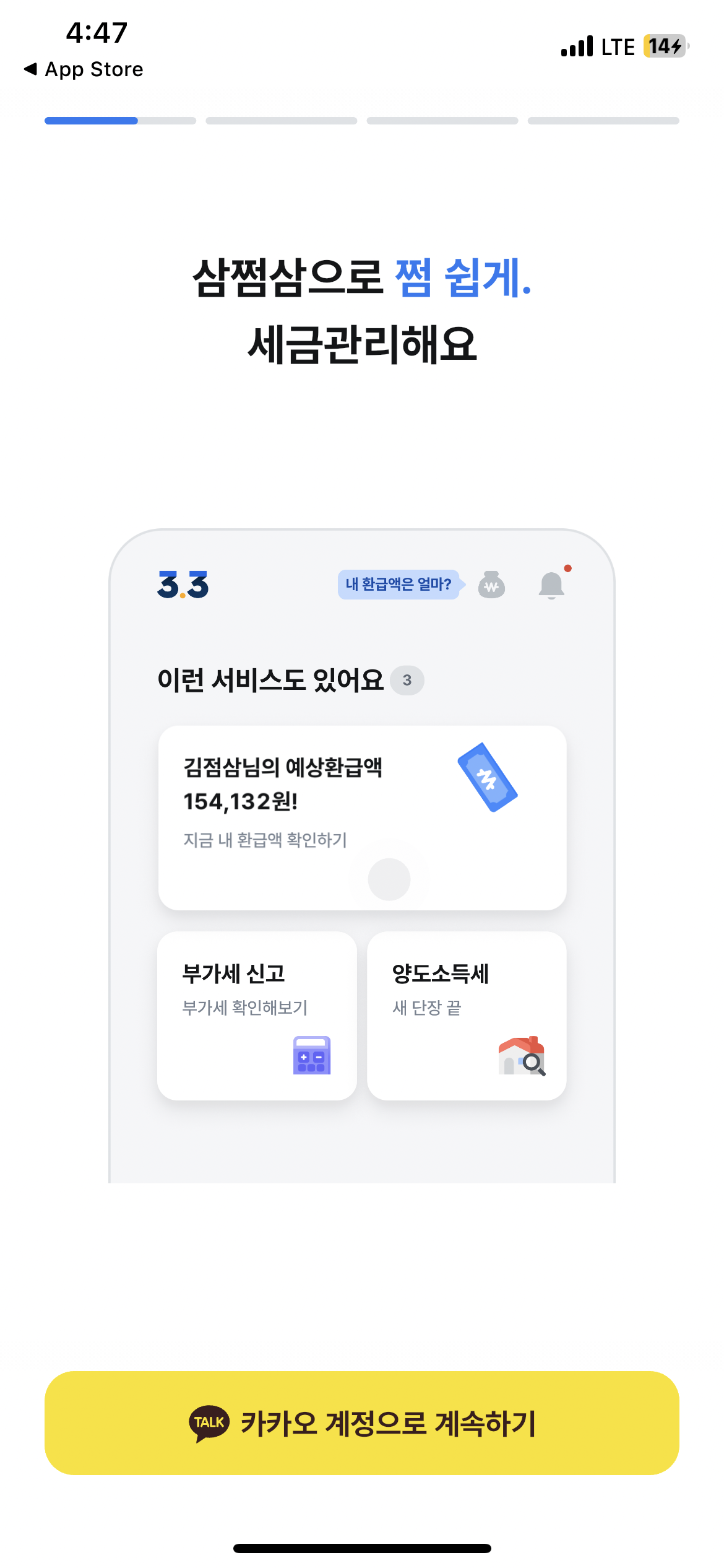 삼쩜삼은 카카오톡 인증으로 간편하게 환급액 조회가 필요합니다.