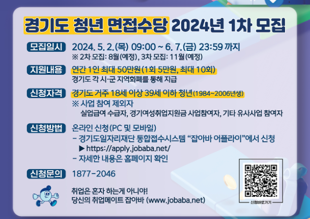 문의 : 경기도 청년 면접수당 상담센터 ( 1877 - 2046)