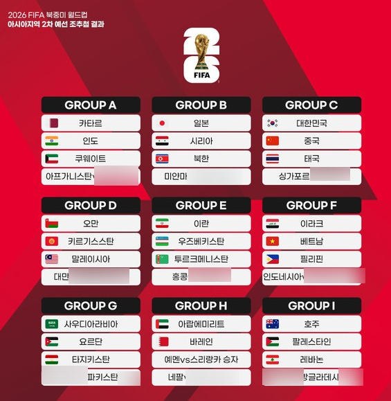 2026년 북중미 월드컵 아시아 예선 조추첨 결과
