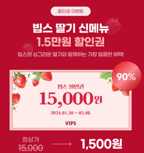 2024.03.12 - 2024 빕스(VIPS) 90% 할인 스프링 바우처 G마켓15000원 할인권 3월12일부터~