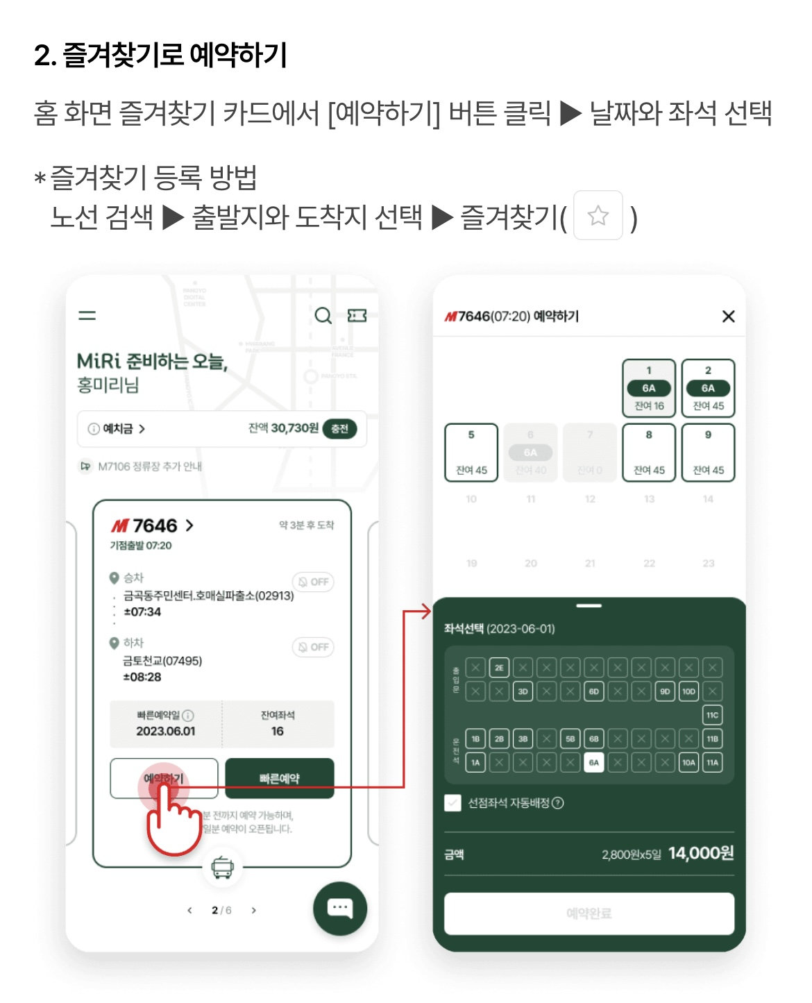 step 5 : 빠르게 예약하기 위해 자주 이용하는 노선을 즐겨찾기 하기